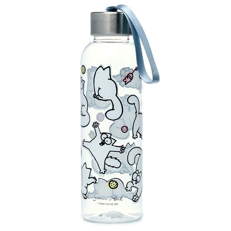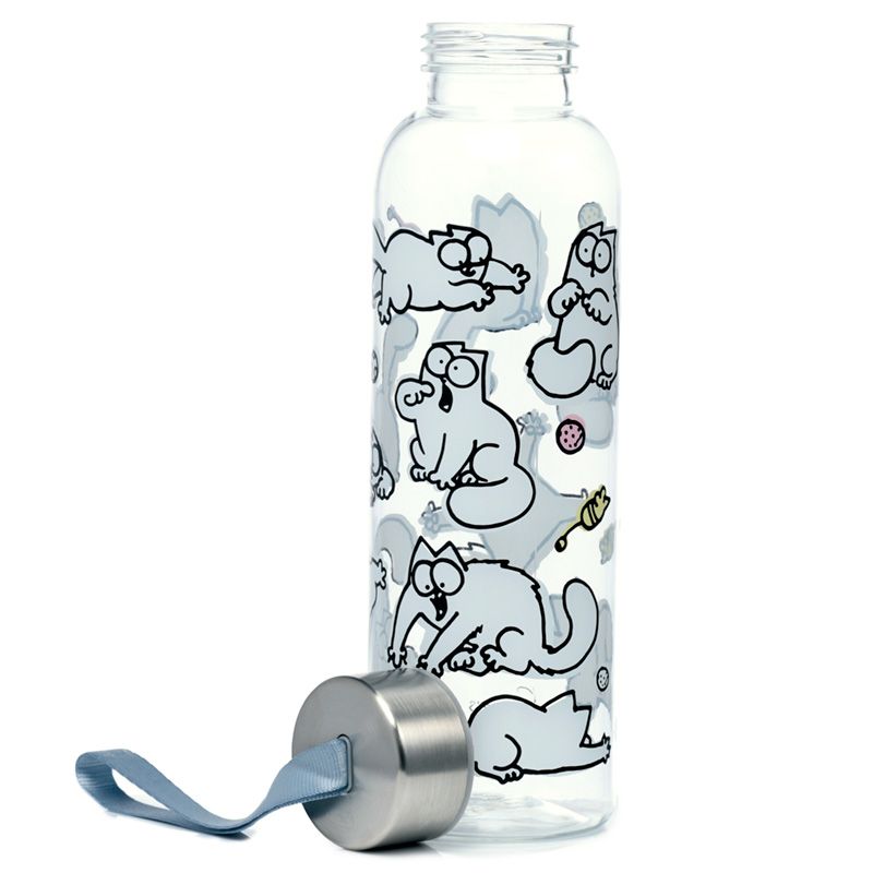 Botella de Agua de Plástico Inastillable con Tapa Metálica – Gato Simon’s Cat – 500ml